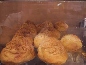 Après, lorsque les pains sont cuits, il les met dans un plat et il les décore.